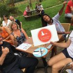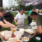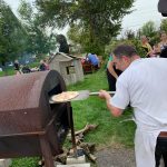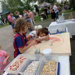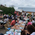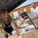 En arrivant, Fanny et Fabien accueillaient les convives. Ils les dirigeaient vers l’atelier « Photo boost » d’accessoires alsaciens qui a ravi les grands et les petits. Tout le monde a adoré enfiler le gilet, le chapeau et la coiffe alsacienne afin d’immortaliser ce moment pour les amis, la famille….. Une grande première pour la plupart, la team « Valérie et Josée » ont animé cet atelier. Puis les grandes tablées se sont formées autour d’un verre de bière offert par l’association. Le four plein de braise, les bénévoles ont commencé à confectionner les tartes flambées (Jean-Michel, Arthur, Henri) et Thierry, le maître des lieux, a enfourné les précieuses tartes tant convoitées, dans le four de l’amicale.