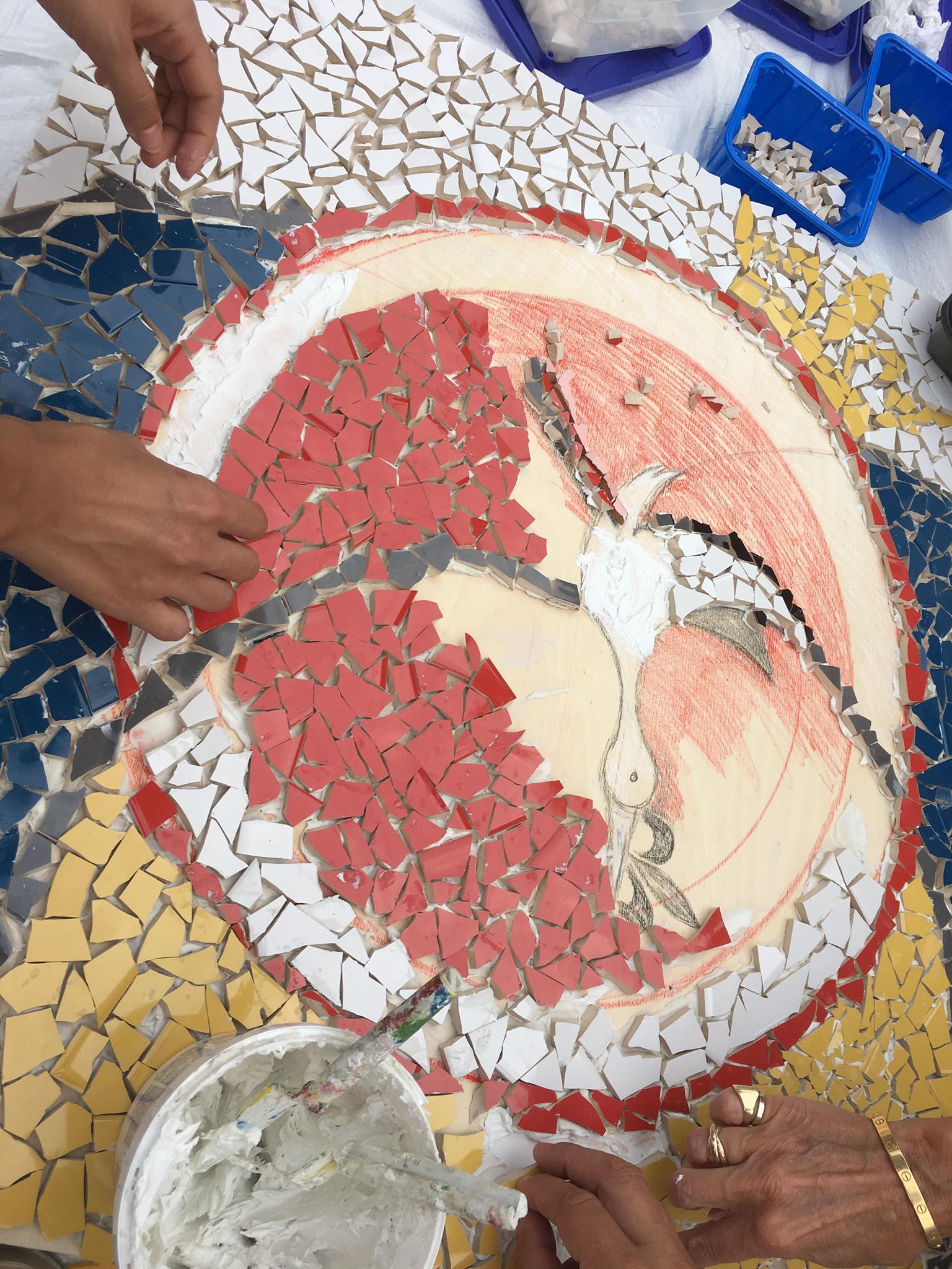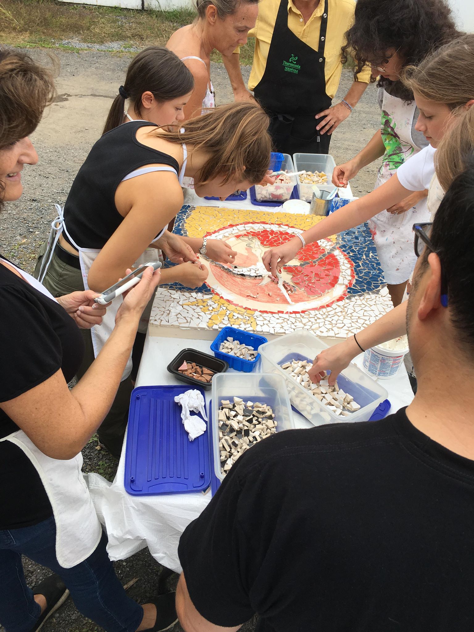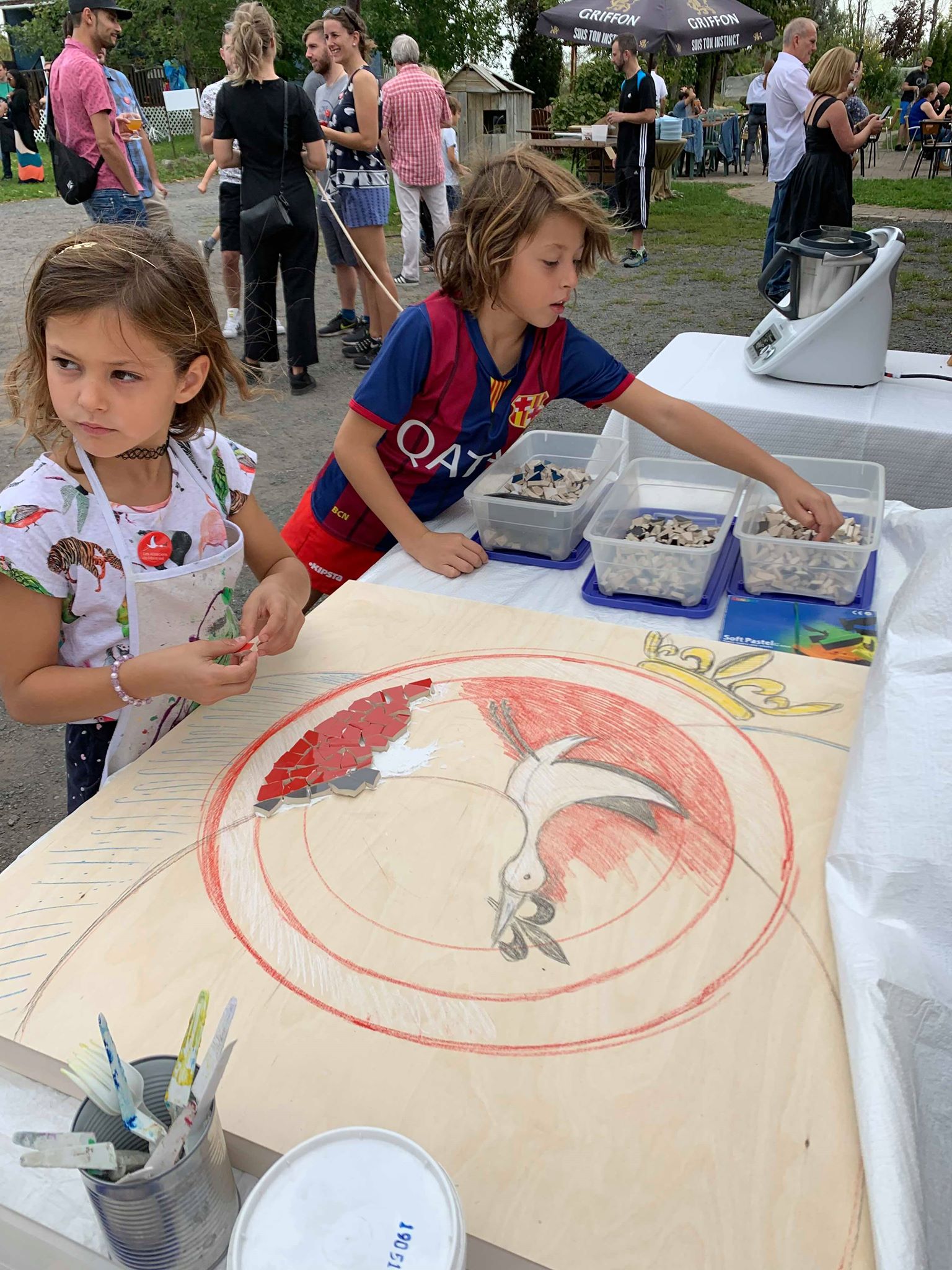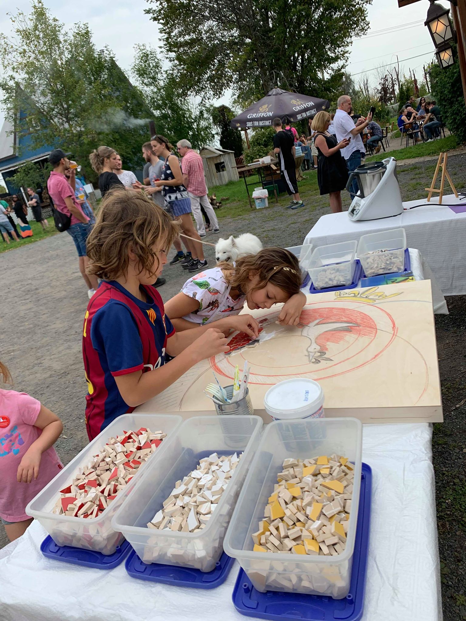 Pour les enfants, l’association avait prévu comme tous les ans, une animation spécifique et avait missionnée « Récréa ». Cette année, les petits et grands enfants ont pu réaliser une œuvre d’art en céramique qui représentait le nouveau logo des alsaciens de Montréal. Les mains étaient pleine de plâtre, les petits carreaux de couleurs bleu, jaune, rouge, blanc, noir ont pris place au fur et à mesure. Un sorbet a su les motiver pour aller jusqu’au bout de ce défi artistique.