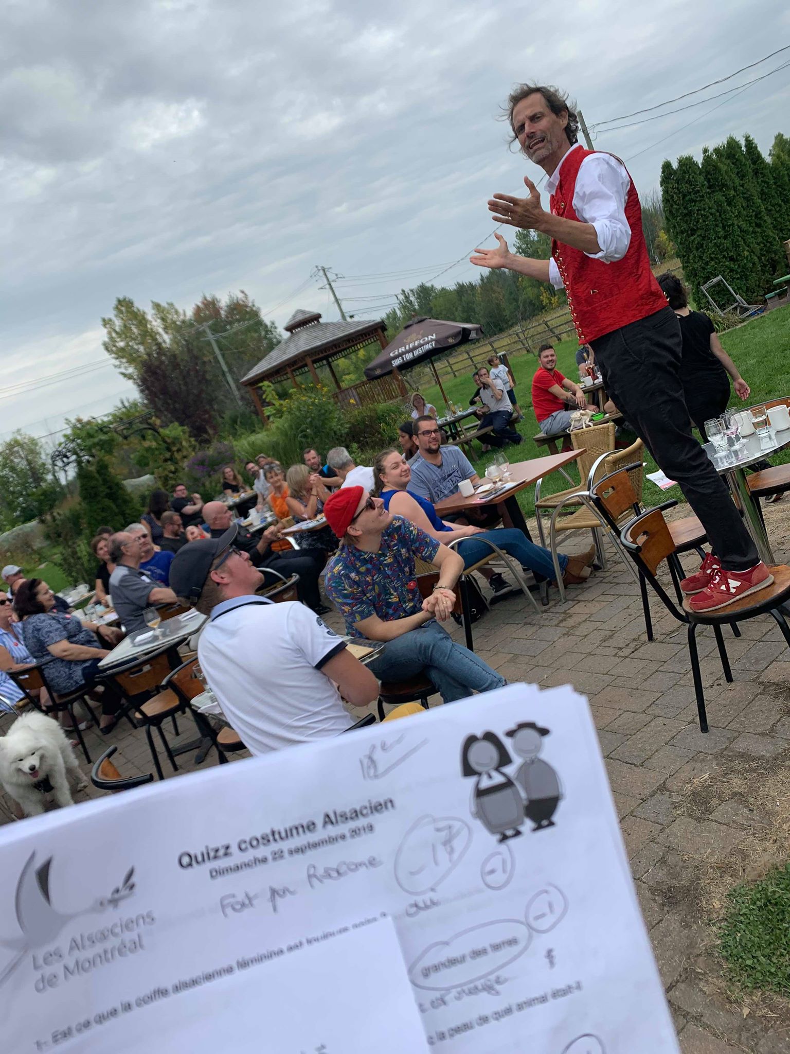 Les sourires, les rires, le partage, la convivialité étaient de mise, autour de la gastronomie alsacienne et aussi autour du quizz par équipe sur le thème du jour : les costumes alsaciens.