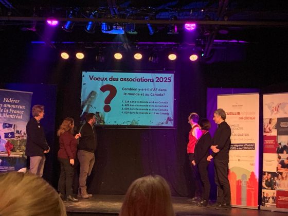 Tous ont dit oui sans hésitation y compris Jamin Chtouki, Directeur de la Comédie de Montréal qui a mis à disposition son théâtre, son équipe et son savoir-faire pour un tel évènement. Ainsi, plus d’une centaine de personnes se sont retrouvées jeudi 23 janvier pour se revoir ou faire connaissance en dégustant les galettes de l’Alsacien Paul Meyer des 3 Patapoufs. Le Consulat Général de France à Montréal, représenté par la Consule Général Adjointe, Geraldine Cherubini-Escales, en a profité pour dévoiler son programme pour la nouvelle année et féliciter les organisateurs pour cette initiative.